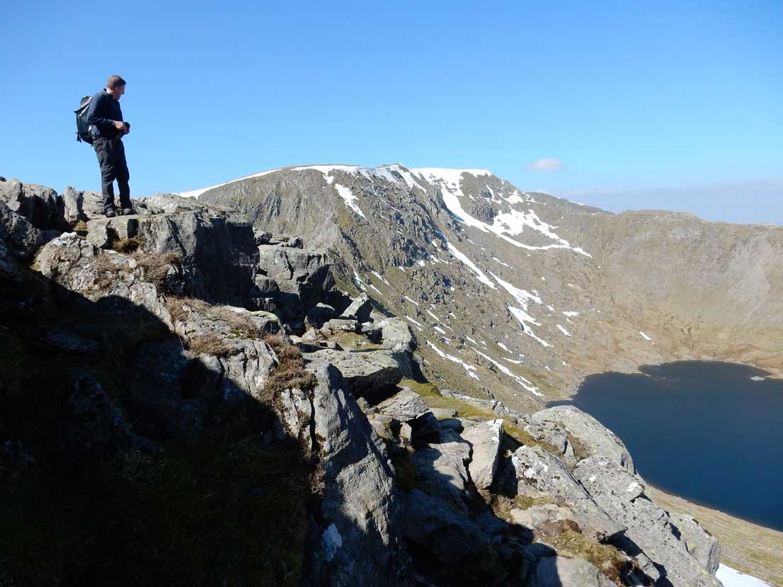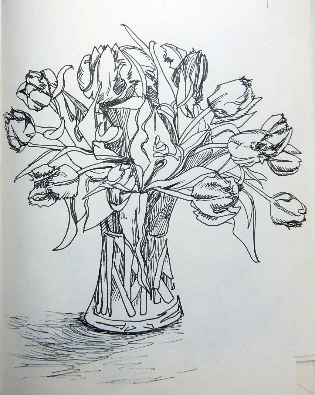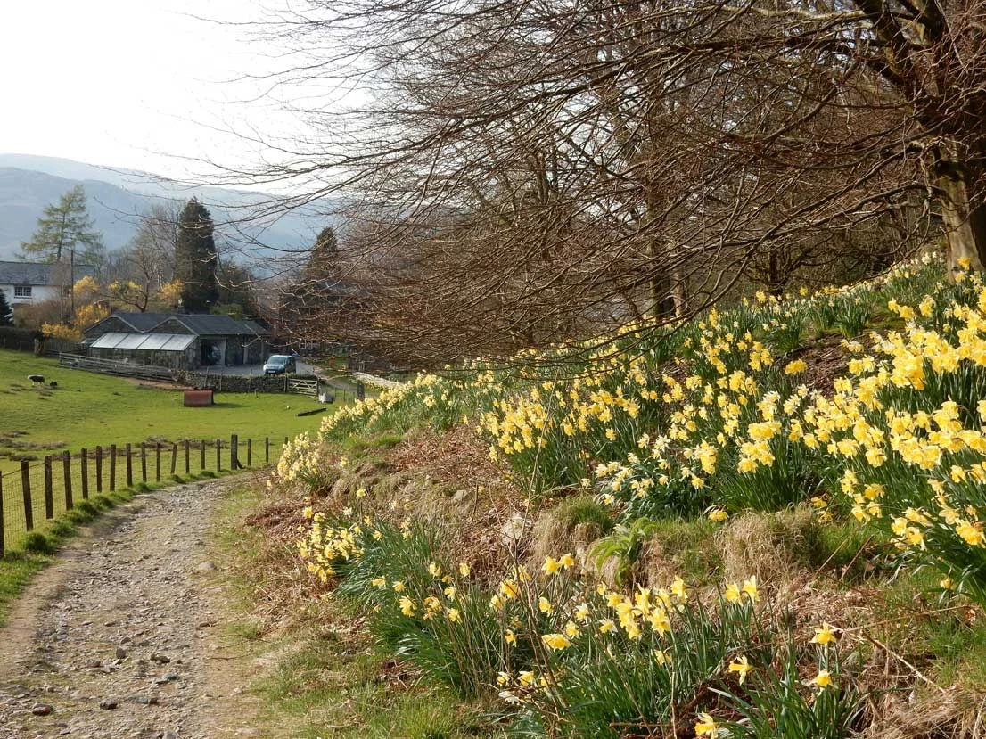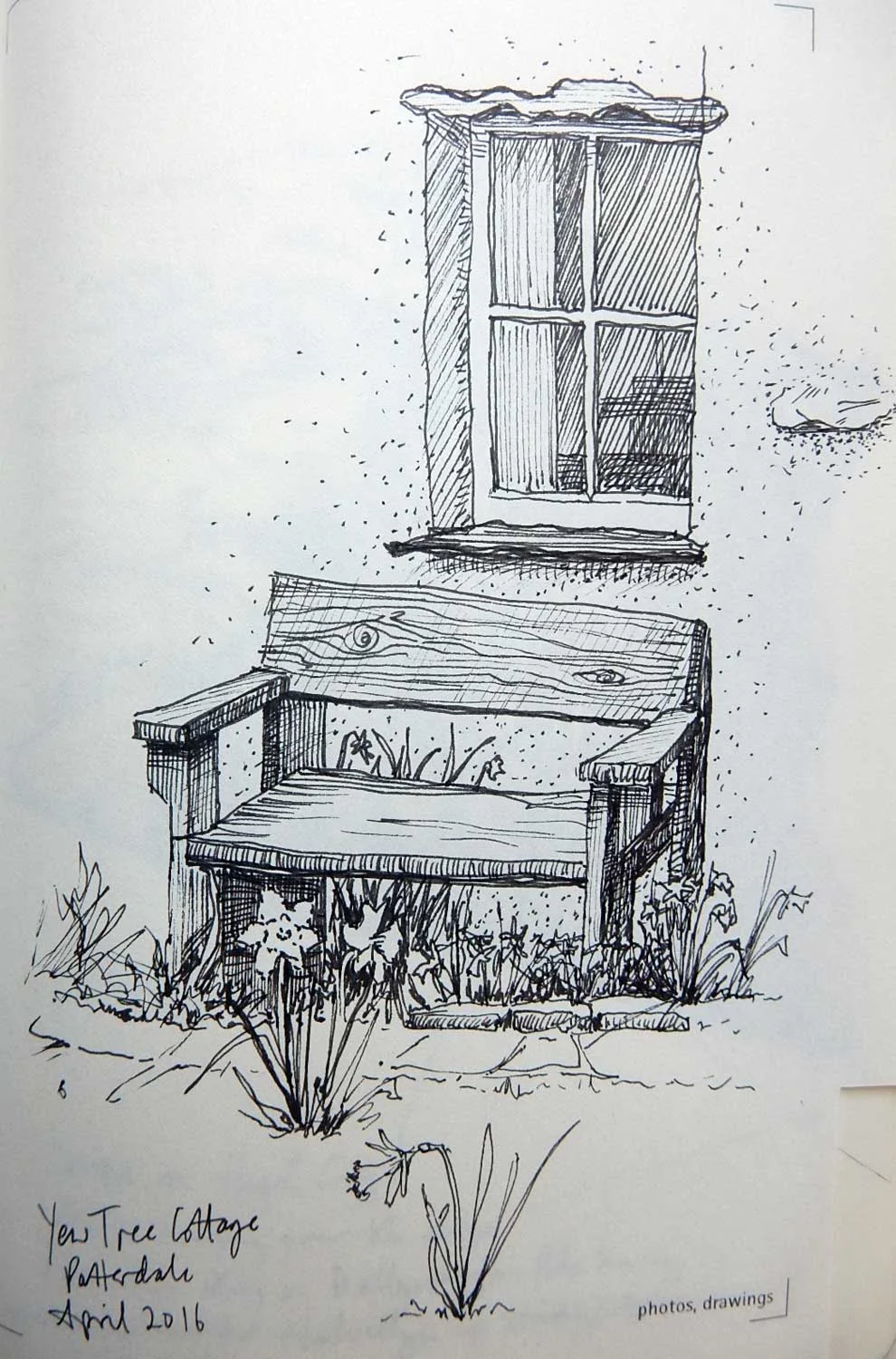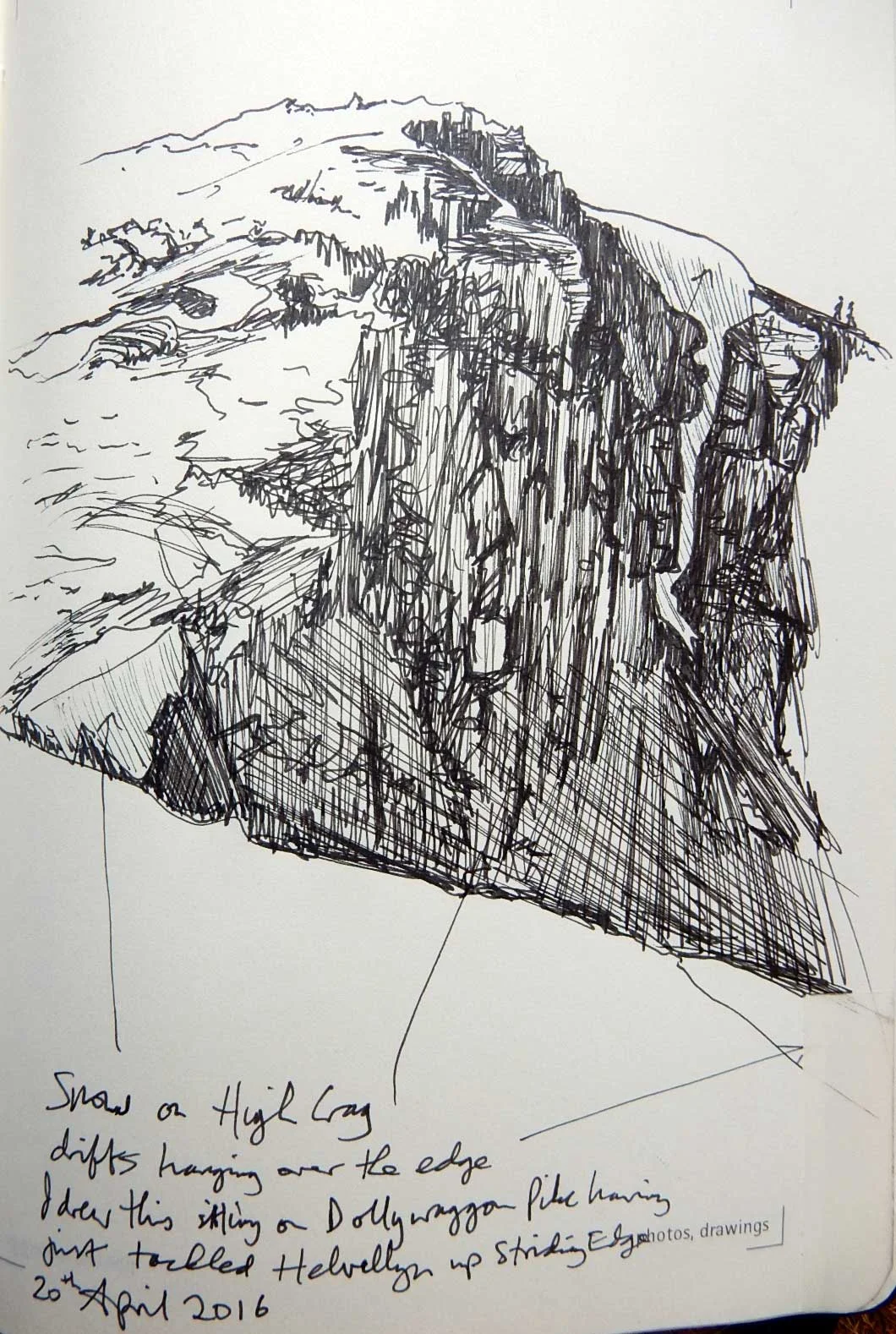 I love holidays. I never have a bad one because there's always something I can find to do (or perhaps not do). A week in the Lake District in April is asking for the car to be packed with all manner of stuff from sunglasses and sunscreen (ever the optimist) to wet weather, woolly, walking gear and lots to do inside on rainy days. So I packed three large canvases, all my paints, books on art that I haven't yet read, a sketchbook for my rucksack, other books, DVDs and even a 1000 piece jigsaw of a drawing by Leonardo da Vinci. We unpacked at our Patterdale destination in a blizzard and woke up the next morning to a bright, blue, cloudless sky. So we set off walking... and then the next day... and the next day... even the day it forecast rain turned bright and sunny! So at the end of the week I took all my paints and the blank canvases and the unread books, unwatched DVDs and half a finished puzzle back home with me! I did manage a couple of sketches while I was resting my weary limbs though. It was beautiful - the daffs were still out and lambs bounced around in the fields. And yes, that is Helvellyn via Striding Edge with snow on top!!!